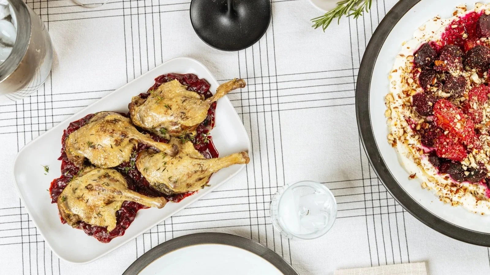 Combine salt, sugar and herbs and sprinkle all over your duck legs. Place these on a tray or plate and cover tightly with plastic wrap. Refrigerate for 12-24 hours.