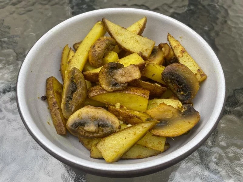 The second recipe I made was contributed by Rashmi Bhattachan, the Nepal-born co-founder of Gorkha Palace, MomoDosa, and Thaliwala Kitchen. Her family recipe for Chyau Tarkari (Mushroom Curry with Potatoes), was easy to pull together—the most hands-on step was slicing potatoes and mushrooms. The turmeric, cumin, coriander, and timur peppercorn spice profile had a warmth that would make this satisfying in winter, but the citrusy notes of the peppercorns and the dash of lemon juice also made it a great patio meal. My only (very minor) quibble is that my cooking time was several minutes longer than the recipe specified.