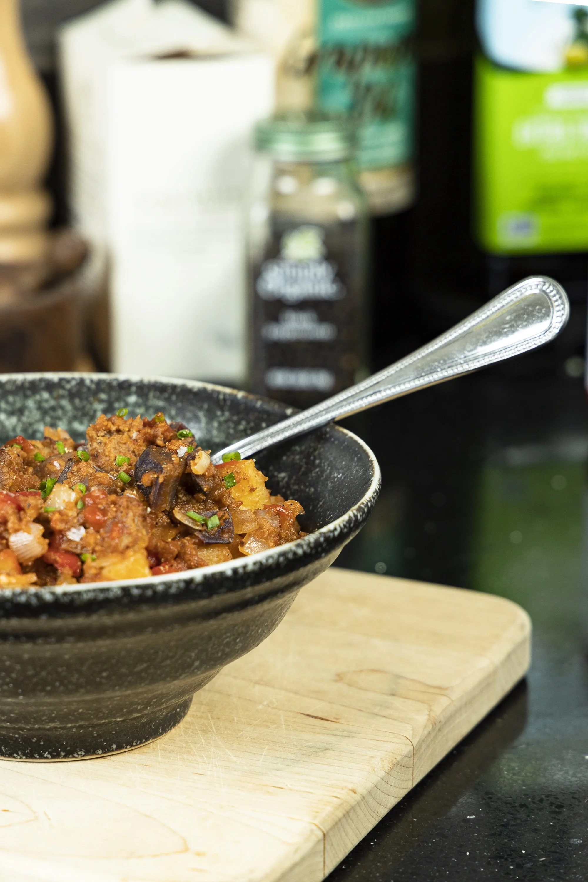 4. Pour stock into to skillet. Bring to a boil and simmer until all moisture cooks off. If stock boils off too quick, add in ½ cup water.